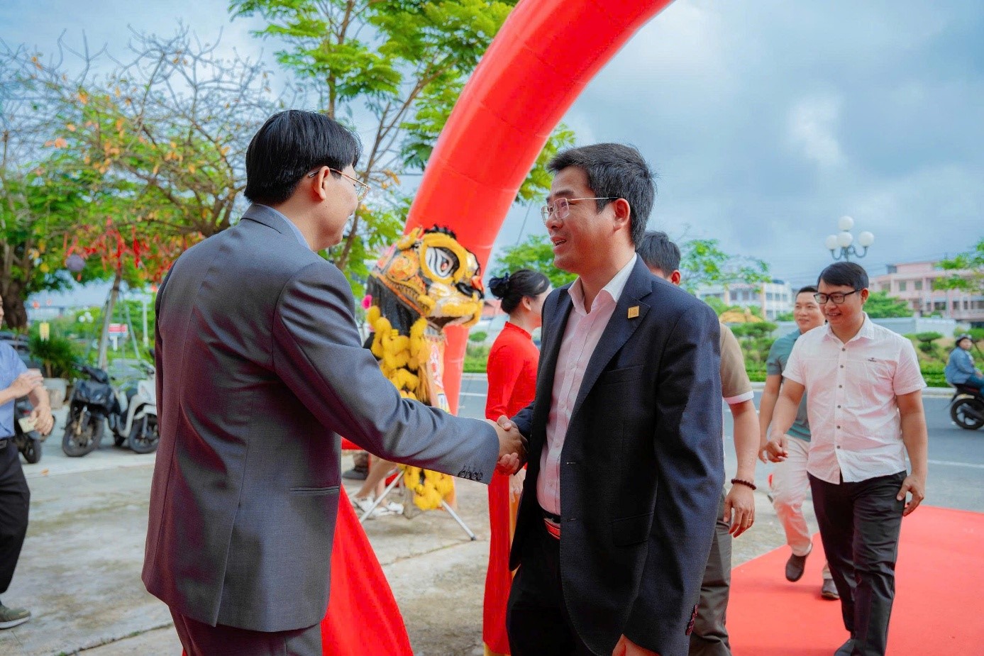 Chủ tịch HĐQT – TGĐ Bùi Tấn Hào bắt tay chúc mừng khai trương cùng GĐ Bệnh viện Mắt Sài Gòn – Phú Yên Phùng Gia Cường