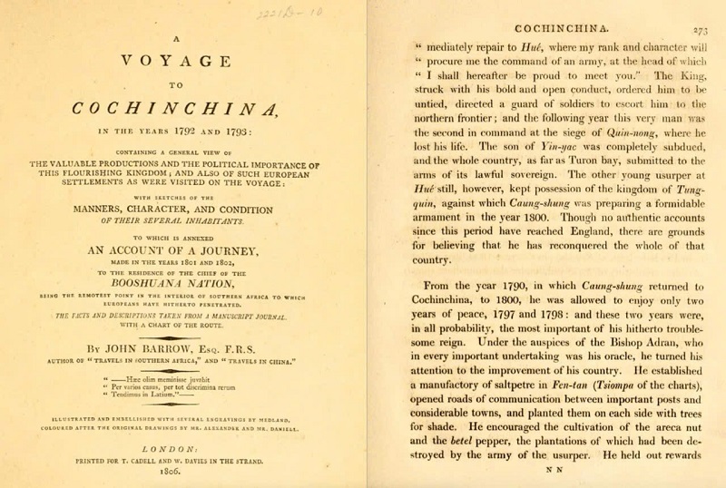 Trong cuốn sách của John Barrow Thứ trưởng Bộ Hải quân Anh (Second Secretary to the Admiralty) nêu lý do Pháp đánh Việt Nam là vì diêm tiêu, nhà máy diêm tiêu khổng lồ được xây tại Fen – tan (Tsiompa of the charts) Ảnh: Kỹ sư Vũ Đình Thanh