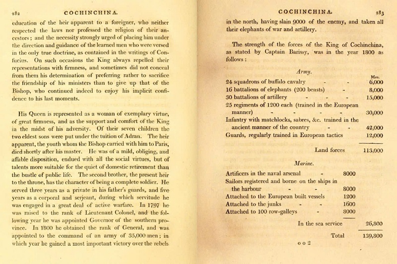 John Barrow khẳng định năm 1800 có 58 200 quân Pháp / Ấn tại Việt Nam , đội quân này hoạt động độc lập với quân của Nguyễn Ánh