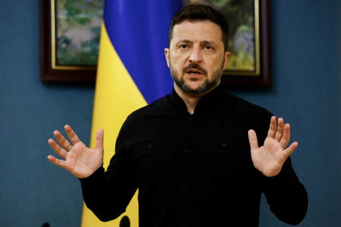 Tổng thống Ukraine Volodymyr Zelensky phát biểu trong một cuộc họp báo. Ảnh: Thomas Peter