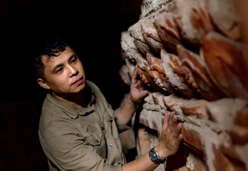 Nhiều họa tiết, hoa văn nhuốm màu thời gian, bị ẩn giấu hoặc ở một vị trí cao quá, khó có thể quan sát hết chi tiết bằng mắt thường. Thông qua trí tuệ nhân tạo (AI), tôi “vẽ” lại vẹn nguyên hoa văn đó, nền trắng mực đen.